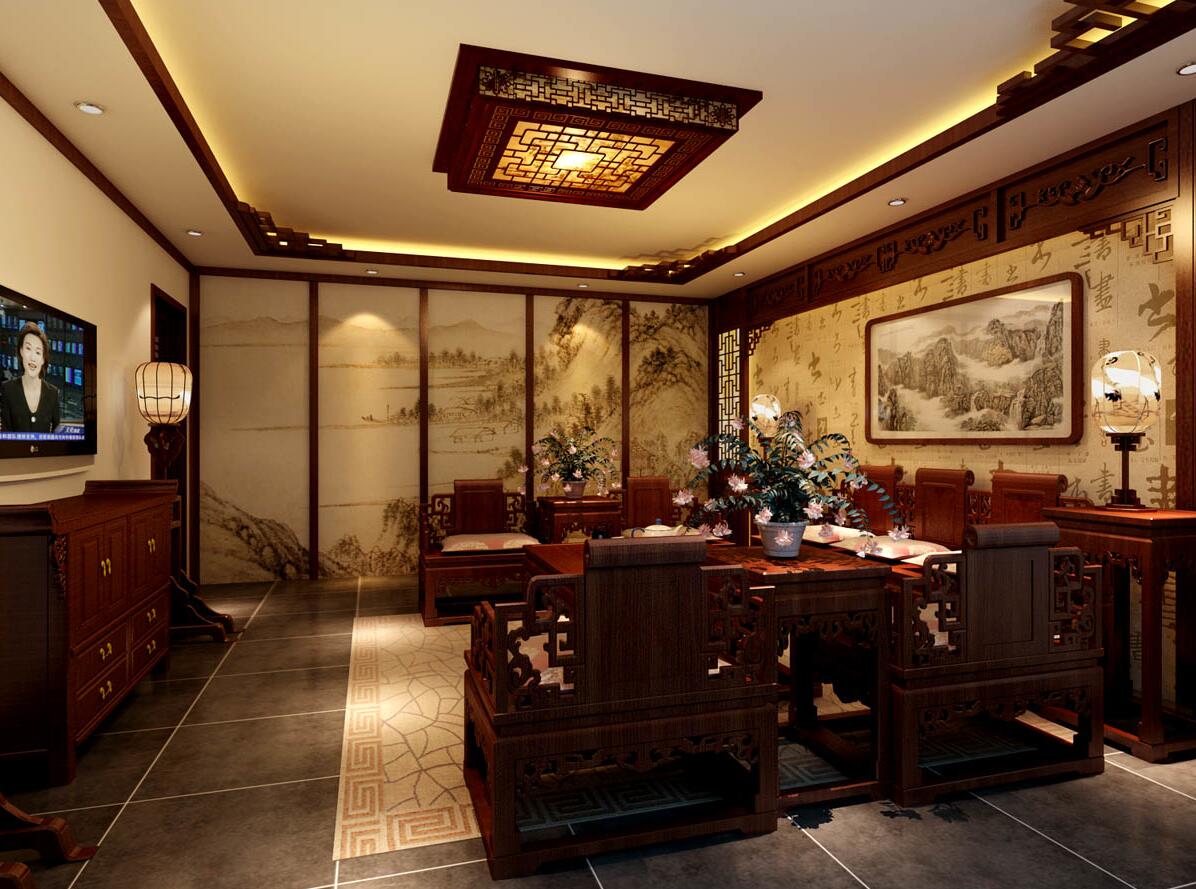 書房中室內裝飾從對色彩和幾何圖形的拿捏入手,在裝飾題材的構建和銜接上,力爭給觀者中式古典裝飾幽雅端秀的藝術觸感