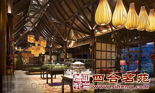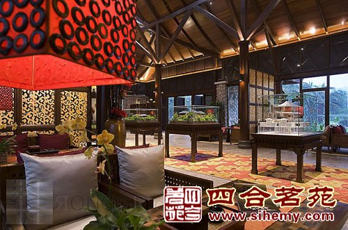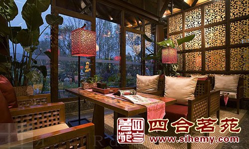 沒有奢華的描金彩繪但是傳統(tǒng)的木結(jié)構(gòu)和中式的花格燈飾自然之美更加吸引觀者的目光,設(shè)計(jì)色彩簡單但不單調(diào)奢華的氣氛充盈了整個(gè)空間。