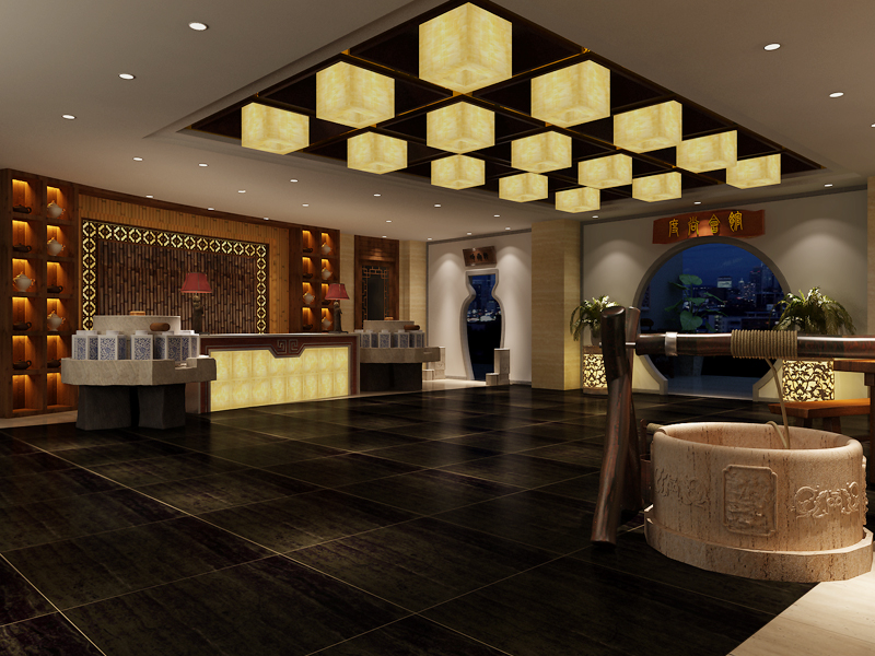 同時根據空間大小和建筑結構特點和設計風格中設計語匯的節奏,也會在茶樓復古裝修風格設計方案中,控制不同的空間中配飾應用量的多少與輕重,以期從整體上中式裝修設計語匯與配飾語匯形成比例和一定的造型關系,強調配飾的襯托和烘托爭取設計與配飾相互協調,希望達到凸顯主題的設計用意。