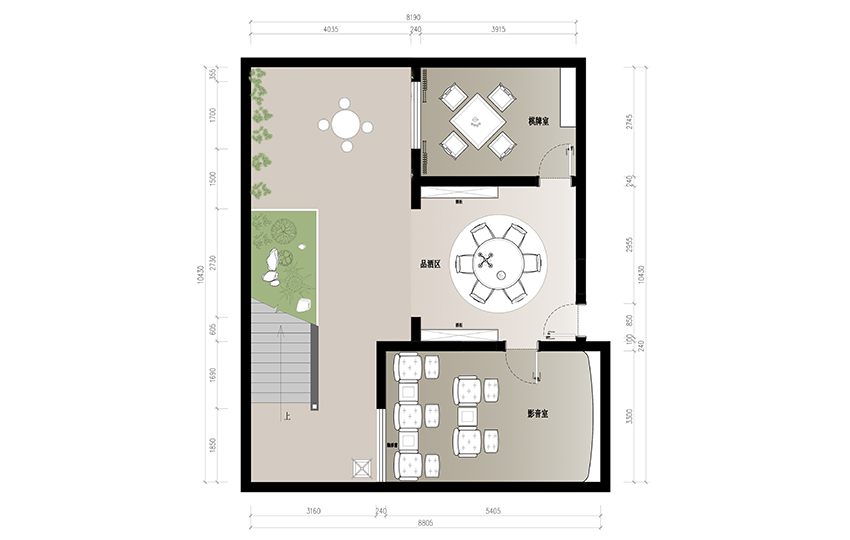 從整體布局可以看出,空間的性質(zhì)追求沉穩(wěn)大氣,又不乏隨性自由之感,對稱的格局,動(dòng)靜分離的區(qū)域,正如空間與人的關(guān)系,融洽和諧共處。從“自在由心”的角度去認(rèn)知世界并享受世界。
