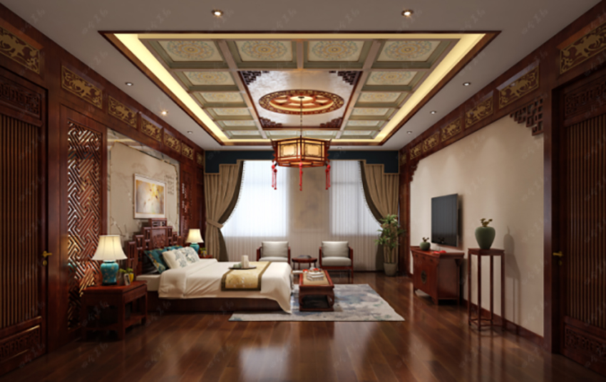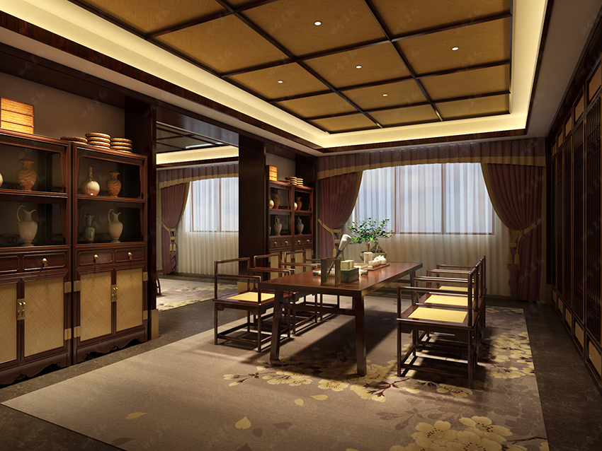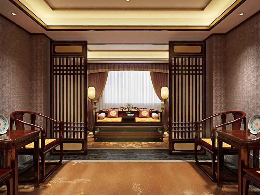 清雅、復古的裝飾藝術,靈活多變,富有層次感,讓整個空間體現出尊貴的品質。在設計手法上,利用了厚重濃郁的復古中式裝修元素為基調,精雕細刻,雅然成趣。